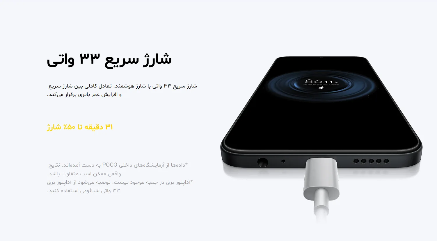 باتری ۶۰۰۰ میلیآمپر ساعتی با شارژ سریع ۳۳ وات