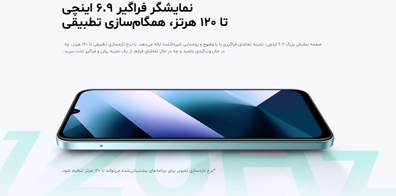 نمایشگر بزرگ ۶.۹ اینچی با نرخ نوسازی ۱۲۰ هرتز